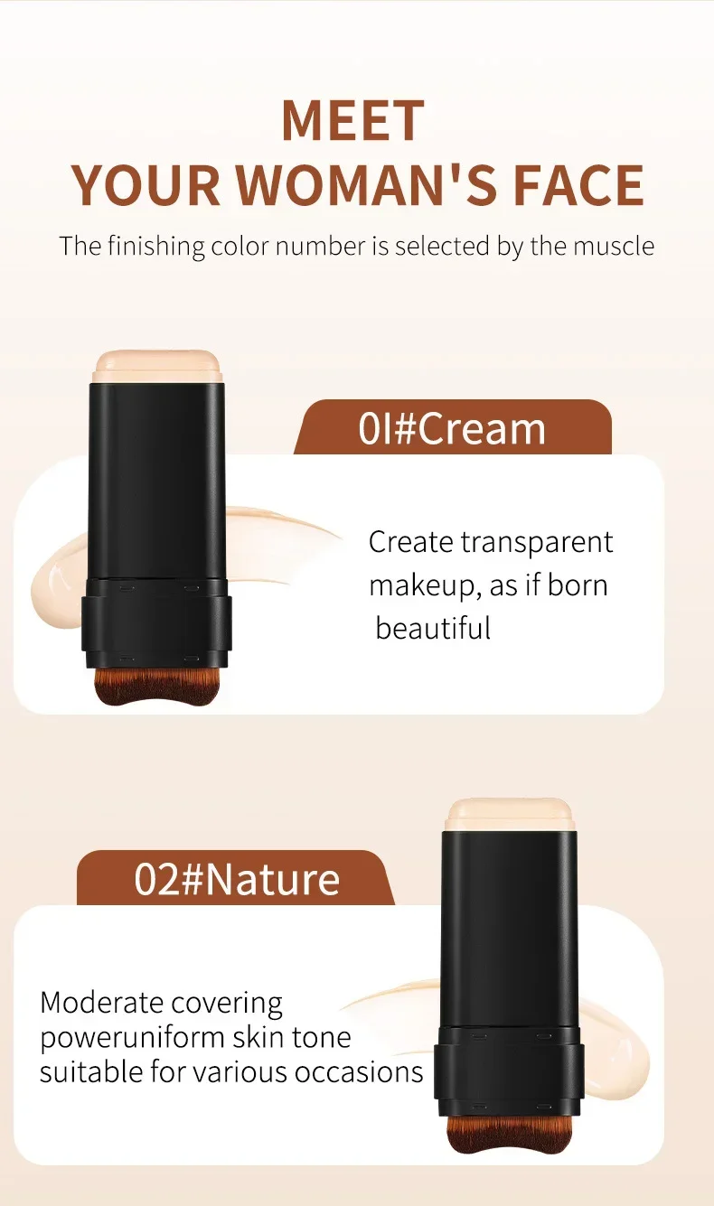 Flawless Eraser Foundation Stick: Moisturizing Light Foundation Stick meets essential makeup essentials, concealing, contouring, highlighting and concealing.